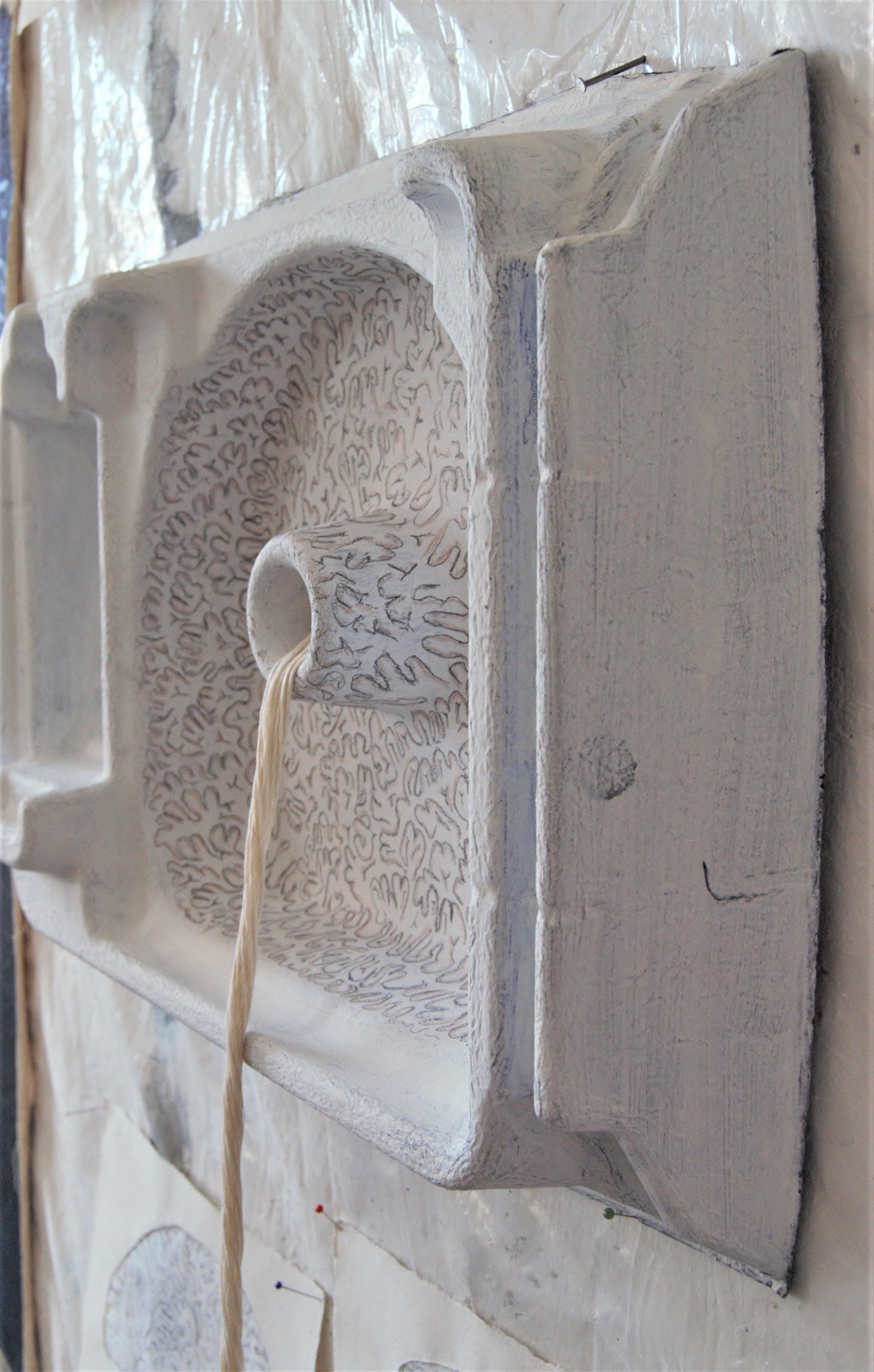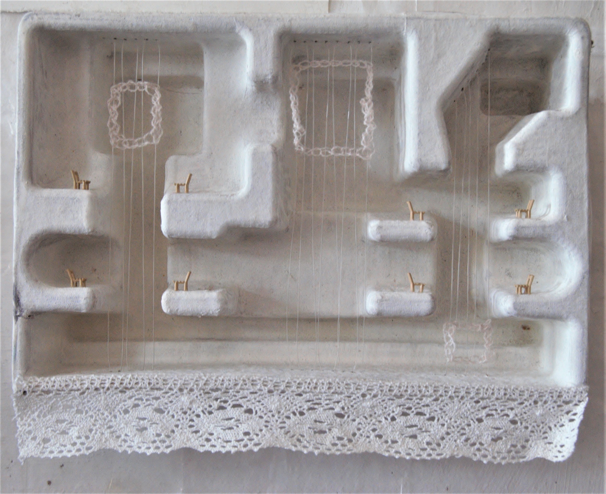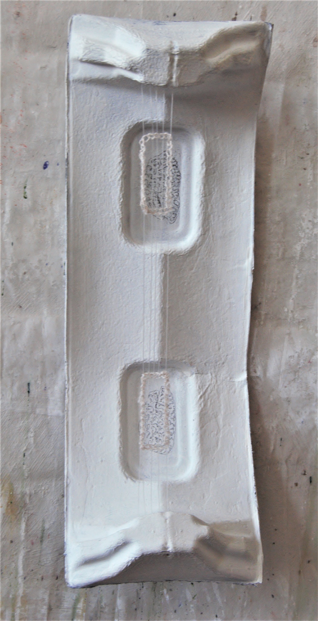 Ursprungsentfremder 2019 (größe variabel) Papier,Eitempera,Leinengarn,Plastik