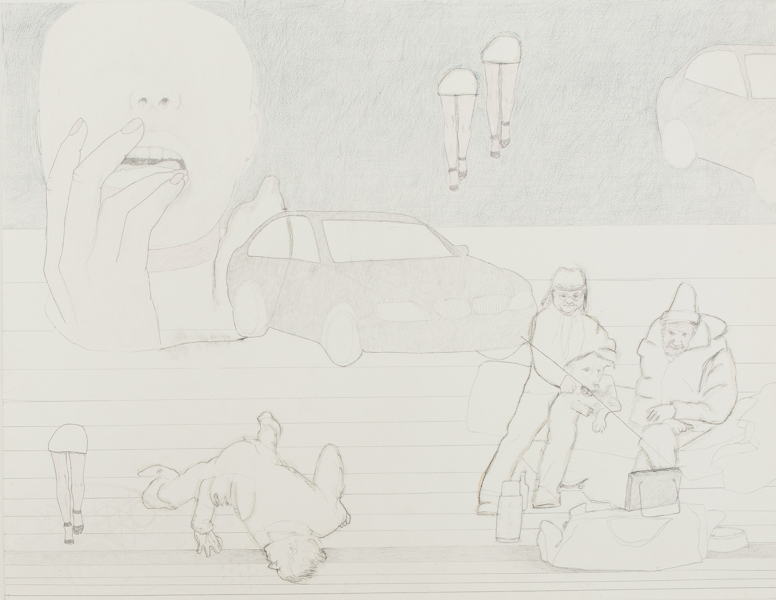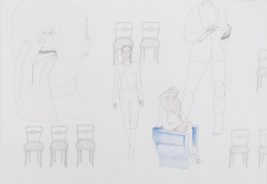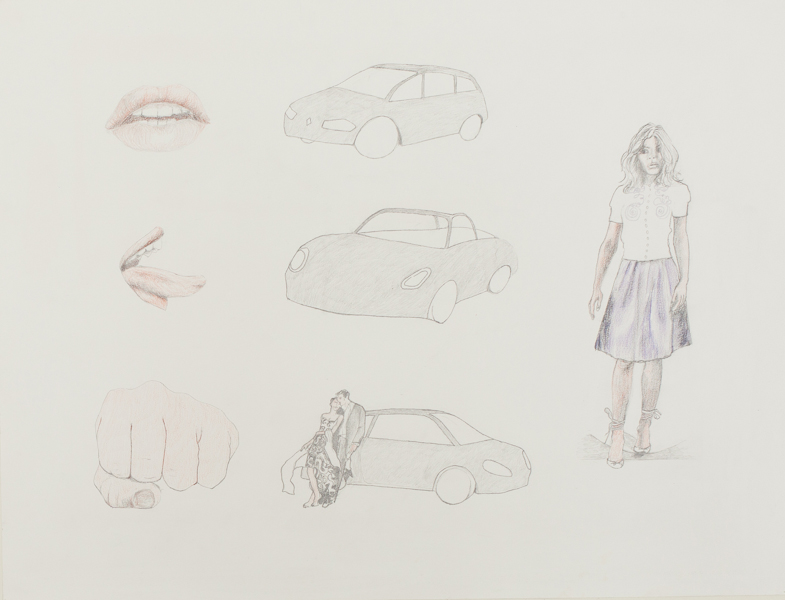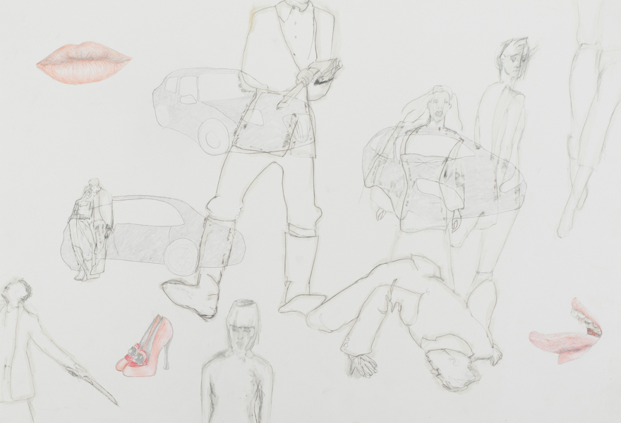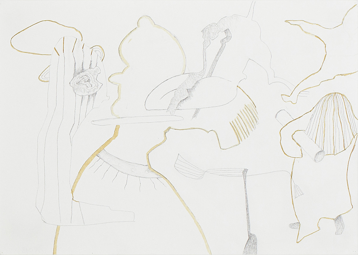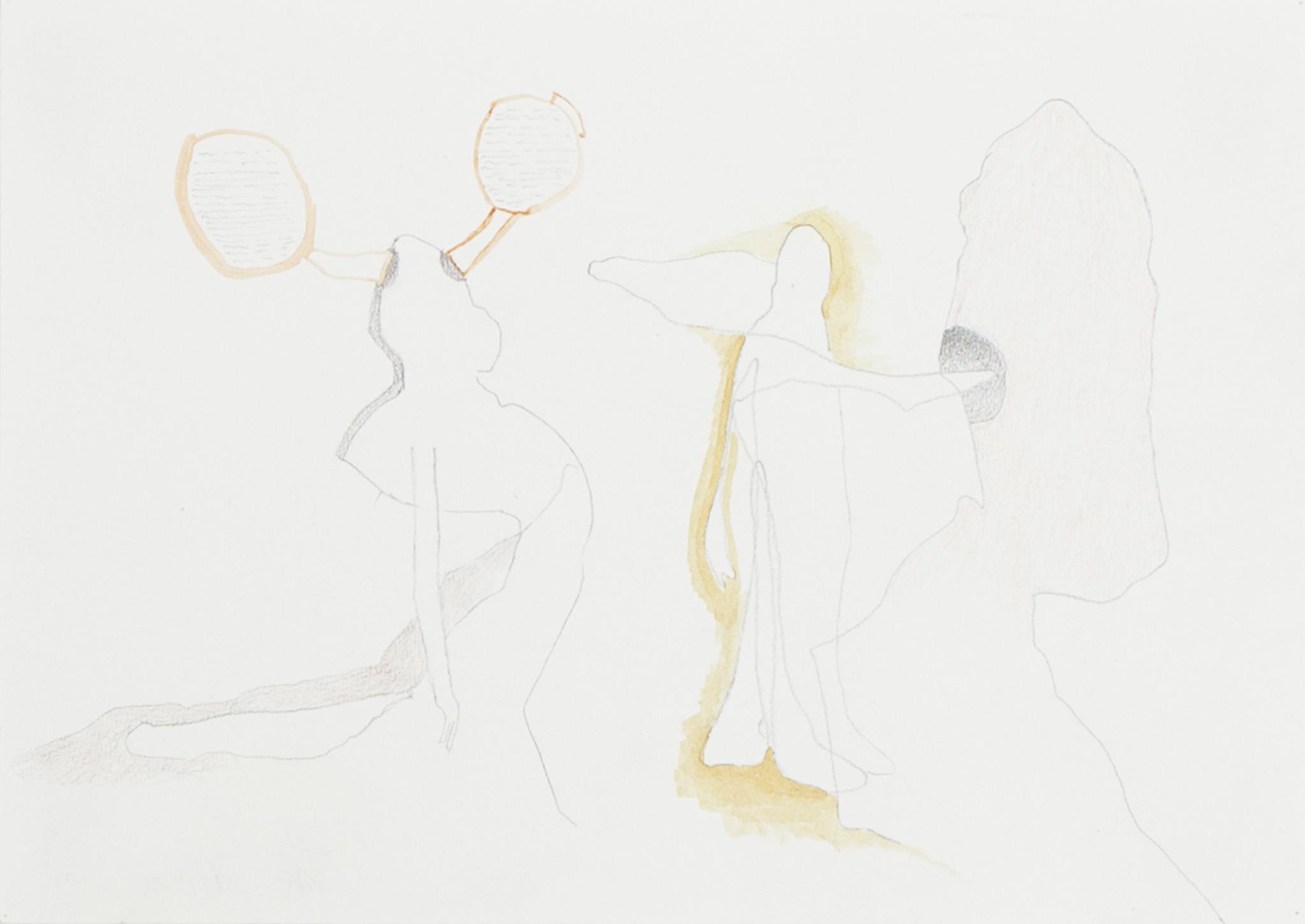 O.T. Bleistift, Buntstift, Tusche auf Papier, ca 0,20m x 0,30 m